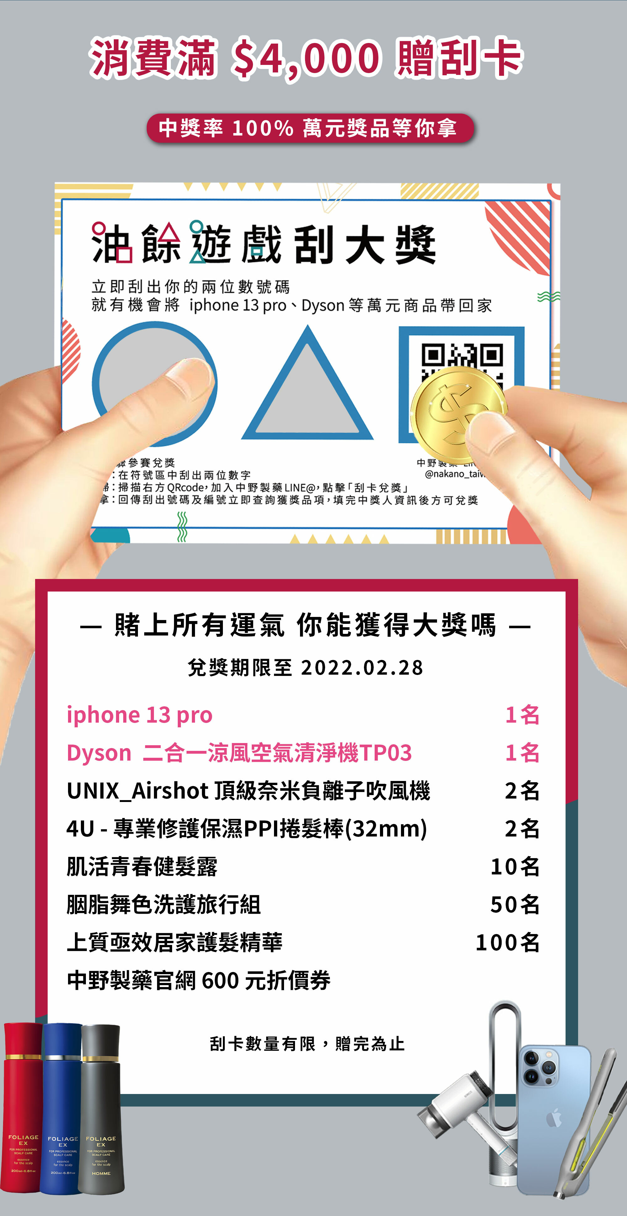 1. 官網消費滿額隨貨附贈刮卡,刮卡數量有限贈完為止,不另行公告。