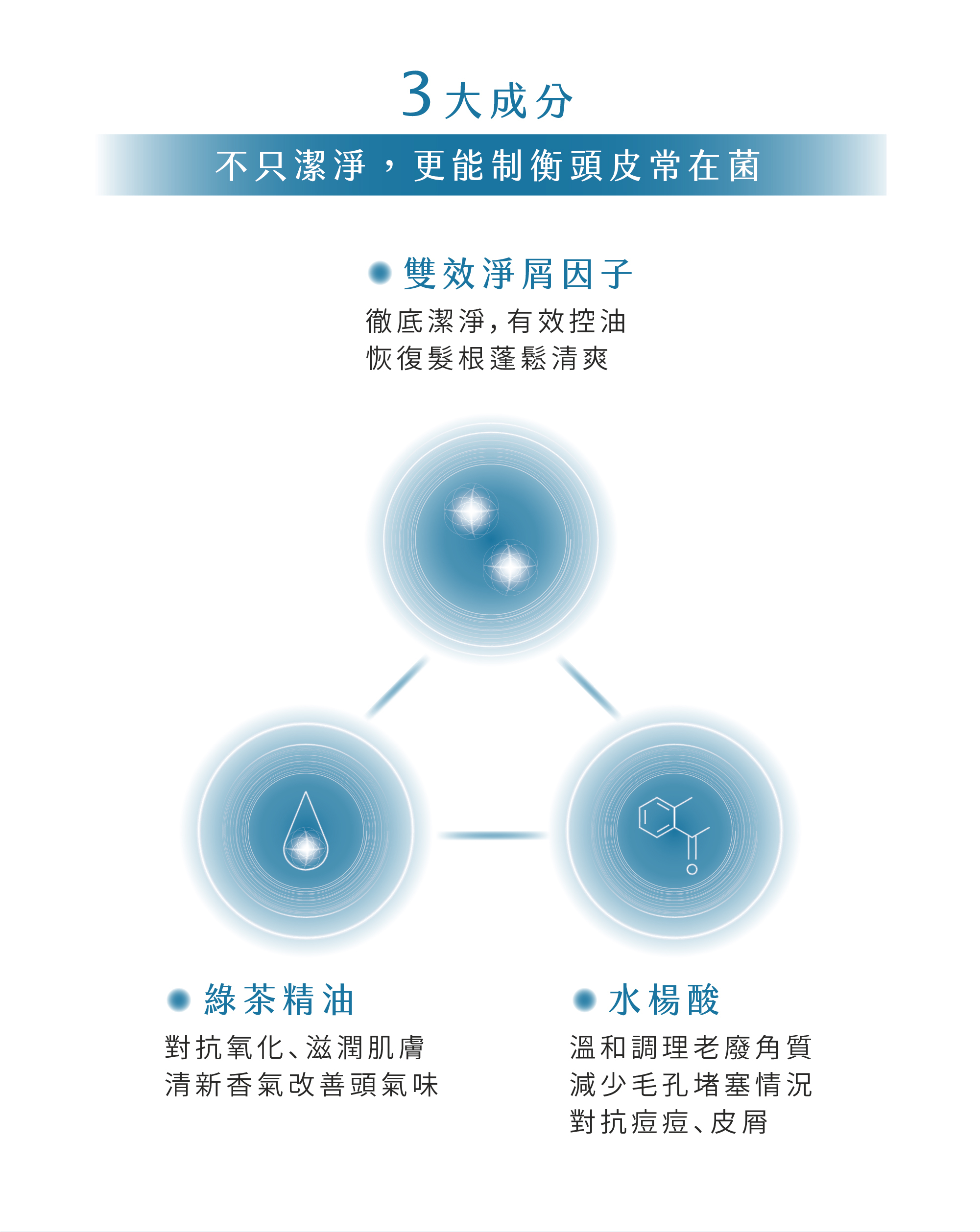 ◎添加雙效去屑因子與水楊酸,有效清潔髮上油屑並減緩洗後頭皮出油狀況,改善油頭困擾