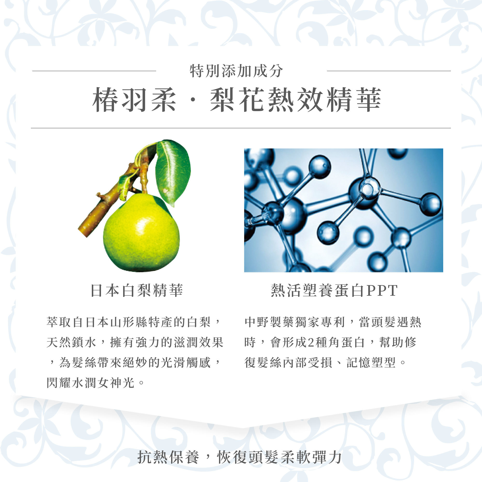 ◎ 特別添加日本山形縣白梨精華,頭髮加倍補水保濕,秀髮水潤柔順不打結